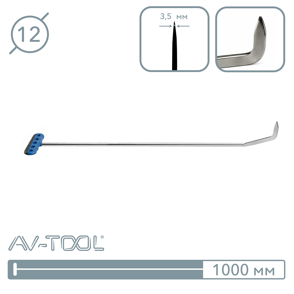Крючок для сложного доступа с плоским стреловидным окончанием. Длина 1000 мм, диаметр 12 мм. Материал: нержавеющая сталь. Производитель: PDR EXPERT, Россия.
