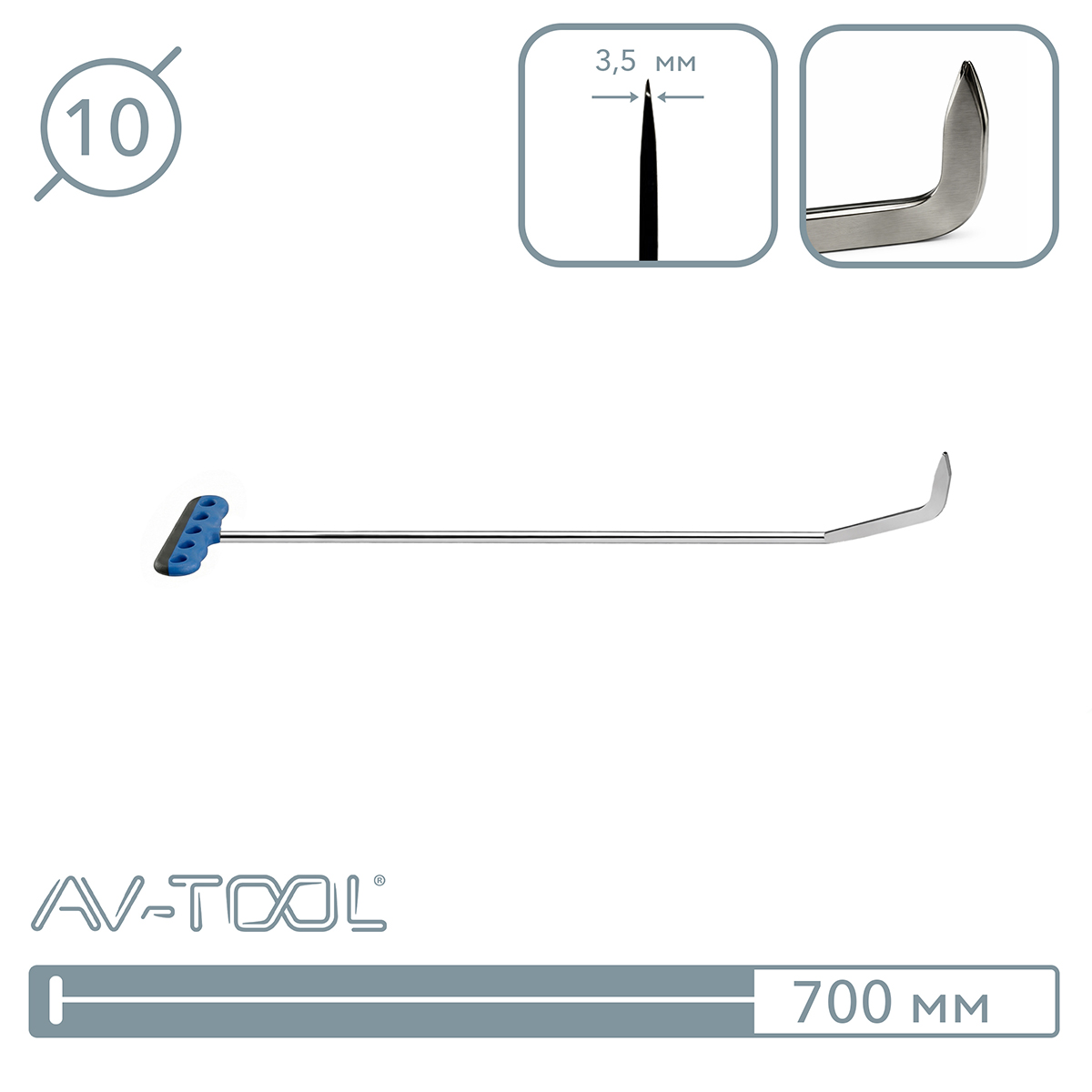 Крючок для сложного доступа с плоским стреловидным окончанием, длина 700 мм, диаметр 10 мм. Материал: нержавеющая сталь. Производитель: PDR EXPERT, Россия.