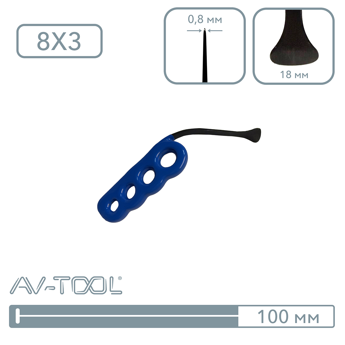 Китовый хвост карнизный 126PDRE для работы под усилителями в труднодоступных местах через узкие окошки (крышки багажников, капоты, крыши). Длина - 100 мм, ширина окончания - 18 мм.