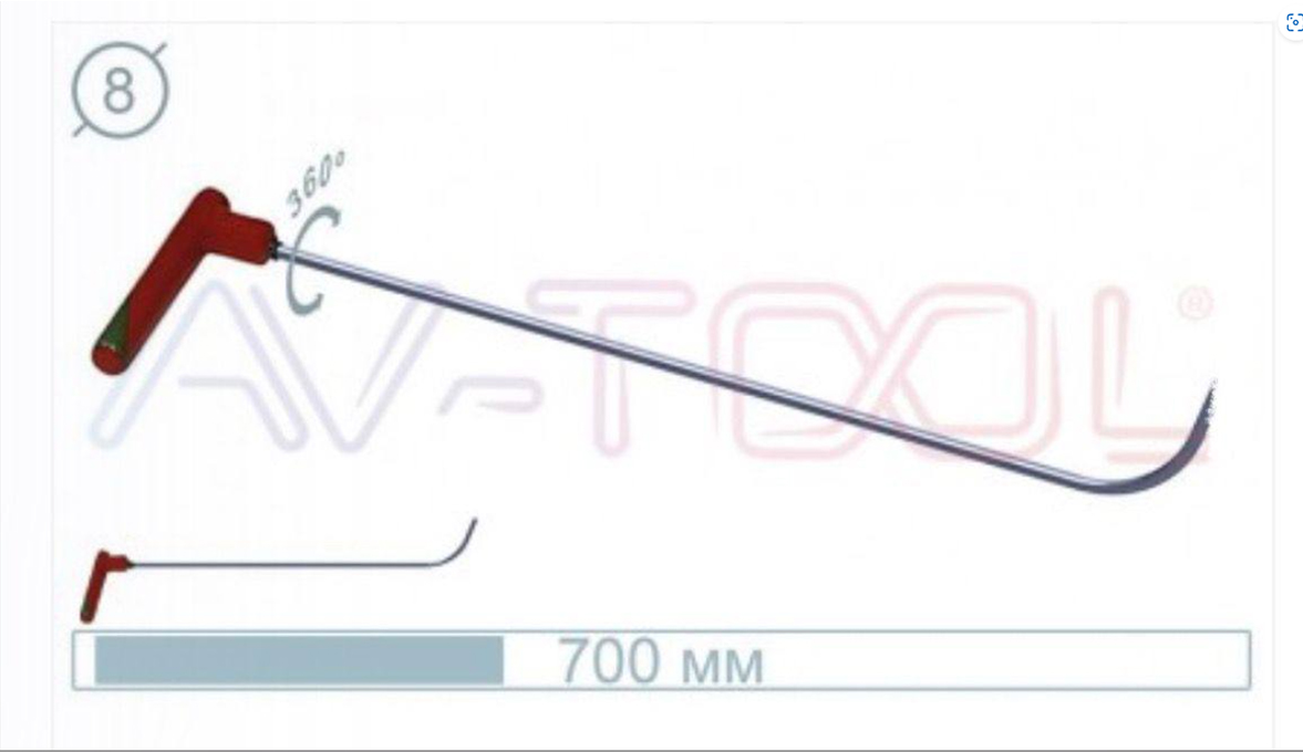 Крючок дверной, длина 700 мм. Диаметр: 8 мм. Окончание: заострённое ножевидное. Идеально подходит для подрезки герметика в зоне ремонта и для точной выверенной работы. Рукоятка поворотная асимметричная. Производитель: AV-TOOL, Россия.