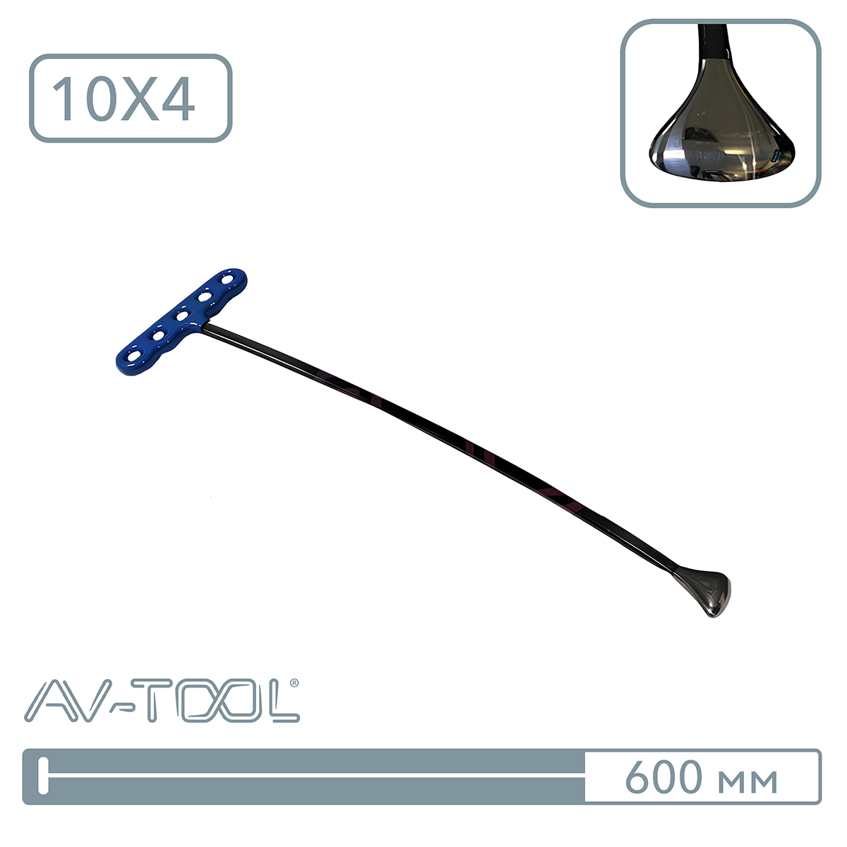 Инструмент имеет прямоугольное сечение (5х10мм) и окончание сферической формы для работы с потянутыми вмятинами и другими типами вмятин методом перекатывания и классическим методом, в полостях и труднодоступных местах. Быстро и эффективно поднимает дно растянутых вмятин. Производитель: PDR EXPERT, Россия.